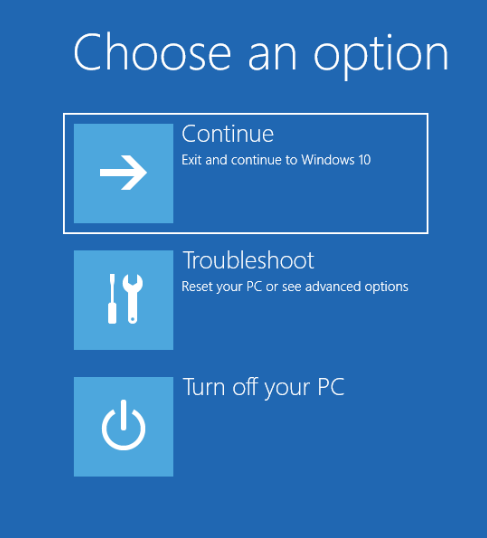 Karşınıza mavi bir ekran ve seçenekler çıkacaktır. sorun giderme butonuna tıklayın.